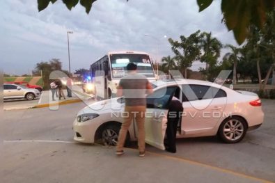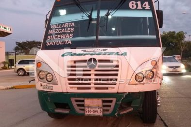 Los hechos ocurrieron la tarde de este miércoles 15 de Enero, por la lateral del carril sur norte sobre el Boulevard Riviera Nayarit, cerca del puente peatonal de la Comer y la Mega, en la zona de Flamingos, Bucerías, donde reportaban al modulo de emergencias del 911, sobre un accidente entre un autobús de pasajeros y un auto particular que chocaron, al parecer, por corte de circulación, y donde informaban que habia personas lesionadas, por lo que solicitaban una ambulancia.