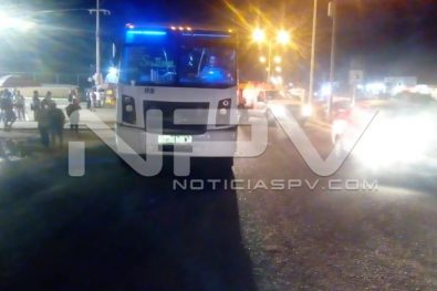 Hasta ese sitio se dirigieron los oficiales de la Policía Vial, a bordo de una unidad radiopatrulla, quienes al arribar se percatan del accidente, informando a su base operativa que se trata de un choque por corte de circulacion entre dos vehículos, siendo señalado como presunto responsable, un camión de Autotransportes Medina, de la marca Dina, tipo autobús, color blanco, modelo 2015, con las placas de circulación 393 JV5, del Servicio Público Federal, que era conducido por un masculino de nombre Ramiro Ramos, con domicilio conocido en San Vicente, Nayarit, Bahía de Banderas.