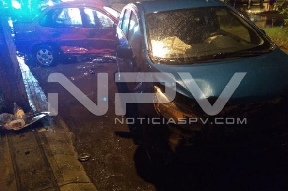 Cuantiosos daños materiales y dos personas lesionadas fue el saldo que arrojó un fuerte accidente ocurrido entre dos autos en la delegación de Valle Dorado, esto debido al exceso de velocidad y a la irresponsabilidad de un alcoholizado sujeto que conducía su vehículo en aparente estado de ebriedad, quien fue el que provocó el percance.