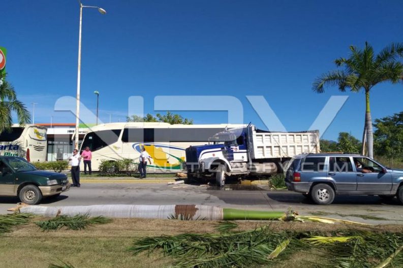 Los oficiales de la Policía Vial, de Bahía de Banderas y el personal de Bomberos Municipales, arribaron al lugar donde tomaron nota del percance, informando a su base operativa que se trata de un choque por alcance entre una Gondola y un autobús de pasajeros de la línea «Vallarta Plus», donde viajaban varias personas que afortunadamente resultaron ilesos, resultando cuantiosos daños materiales y dos palmeras dañadas, una de ellas totalmente derribada.
