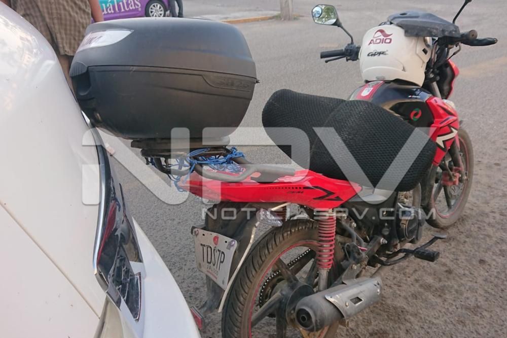 Aparatoso accidente ocurrió entre una motocicleta y un taxi colectivo en el poblado de Bucerías, Nayarit, donde afortunadamente solo se registraron daños materiales, sin víctimas que lamentar, haciéndose cargo de tomar nota los elementos de Tránsito Municipal de Bahía de Banderas.