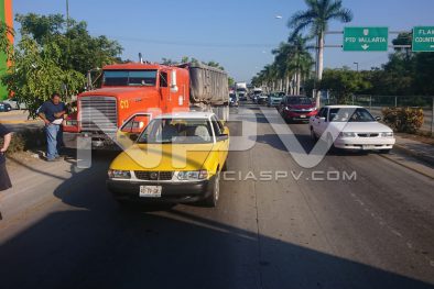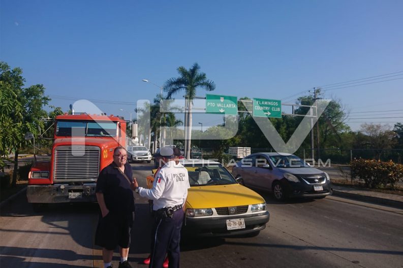 Chocan por alcanse un taxi y un tráiler en Bucerias