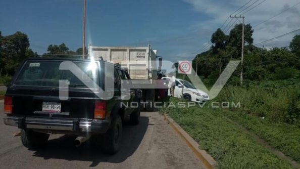 Aparatoso accidente se registró en el tramo con dirección de Mezcales a San Vicente, donde chocaron dos vehículos, arrojando sólo daños materiales sin víctimas que lamentar