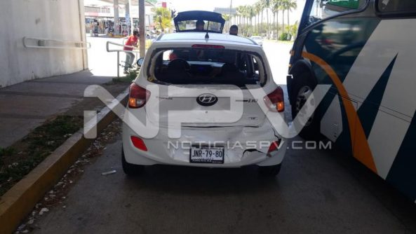 Aparatoso accidente ocurrió entre dos vehículos en el ingreso a Nuevo Vallarta, donde reportaron personas lesionadas que viajaban en un camión de pasajeros y en un auto compacto mismas que fueron auxiliadas por elementos de los servicios de emergencias quienes las llevaron a revisión médica.