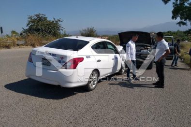Asegura el conductor de la camioneta, que de repente pierde el control del volante, debido a una falla mecánica, invadiendo por completo el carril contrario al ir circulando por el puente de ingreso a Jarretaderas, impactándose de frente contra un vehículo Nissan, tipo Versa, de color blanco, del sitio de Bucerías, con número económico NBB-0045, que era conducido por Adrián López, con domicilio en la colonia las Parotas, el cual resultó con golpes en el rostro al pegar en el vidrio, pero afortunadamente no ponen en riesgo su vida.
