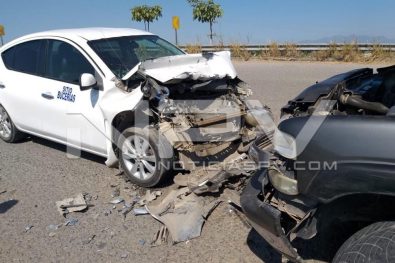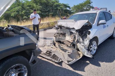 Cuantiosos daños materiales resultaron en brutal encontronazo de frente en el puente a desnivel de Jarretaderas, entre una camioneta Silverado y un taxi del sitio de Bucerías, donde afortunadamente el conductor solo resultó con lesiones menores.