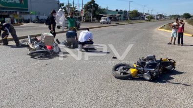 Aparatoso choque de dos motocicletas, se registró la mañana de este sábado sobre la carretera que lleva hacia San Juan de Abajo, Nayarit, resultando lesionados ambos motociclistas que fueron atendidos por paramédicos del cuerpo de bomberos.