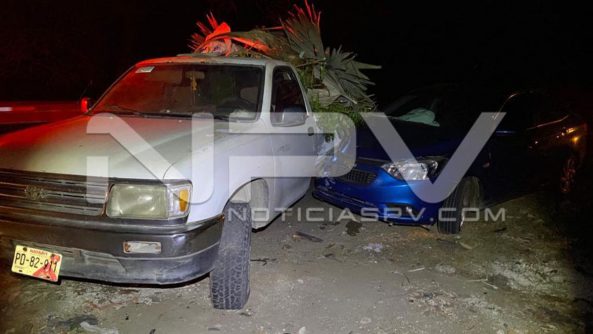 Los agentes de Tránsito y de la Policía Municipal, acudieron al lugar donde al arribar se percataron del accidente y luego informaron a sus superiores, que efectivamente se trata de un choque entre una camioneta Pick Up, de color blanco, con las placas PD-82-911, de Nayarit y un auto Chevrolet, Aveo, con placas JPY-90-94, de Jalisco.