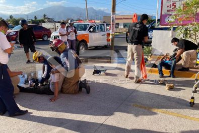 Hasta ese sitio arribaron los paramédicos de una ambulancia privada del hospital CMQ, de Bucerías, quienes le brindaron los primeros auxilios a dos masculinos identificados con los nombres de Juan Carlos y Marcelino, este último originario de Chiapas, quien dijo que su amigo Juan, vecino de la colonia La Primavera, en San José del Valle, conducía la motocicleta Italika, con la que se estrellaron contra una barda.