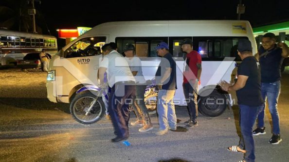 Hasta ese sitio arribaron los Policías junto con los agentes de Tránsito Municipal de Bahía de Banderas, quienes informaron a su base operativa que ahí tienen a la vista una motocicleta de la marca Suzuki todo terreno, de color azul, que está abajo de un taxi colectivo con ruta San Juan, este de la marca Nissan, NV350, tipo Urvan, de color blanco, con placas 58-25-MDE, del transporte público de Nayarit.
