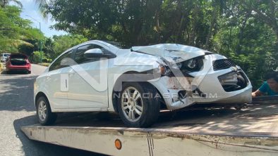 Se trata de un vehículo de la marca Chevrolet, tipo Sonic, LT, de color blanco con placas de circulación JRM-10-84 del estado de Jalisco, que conducía un vecino de San Juan de Abajo, quien junto con su acompañante resultaron ilesos afortunadamente, aunque los daños materiales fueron cuantiosos.