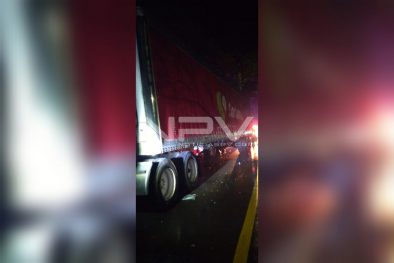 El chofer del tracto camión detuvo su marcha y dio aviso al modulo de emergencias del 911, arribando las autoridades policíacas al lugar para tomar nota de los hechos.