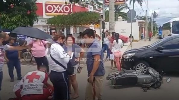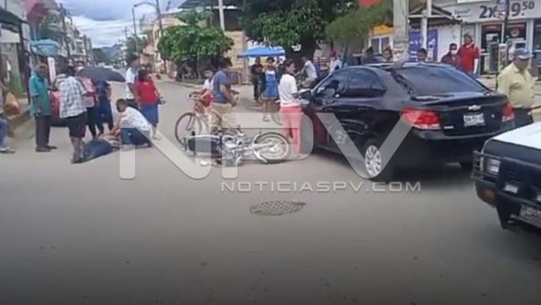 Vecino de El Porvenir, Nayarit, resultó con lesiones luego de caer al pavimento al ir circulando en una motocicleta con la que se estrelló contra un auto que al parecer le cortó la circulación en el cruce de «Uno en Uno», donde la mujer que conducía el automóvil no respetó y provocó el accidente.