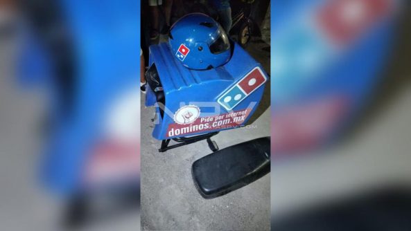 Hasta ese sitio arribaron los agentes de Tránsito a bordo de sus unidades, quienes informaron a su base operativa que ahi se encontraban siniestrados una motocicleta Yamaha, de color blanco y un auto Chevrolet, tipo Chevy, color gris, con placas JJZ-46-57, donde también se apreciaba lesionado el motociclista empleado de Domino’s Pizza, por lo que solicitaron una ambulancia.
