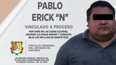 La Fiscalía del Estado de Nayarit dio a conocer, que a través de la Agencia del Ministerio Público de la localidad de Bucerías, municipio de Bahía de Banderas, logró vinculación a proceso contra Pablo Erick “N”, por su presunta responsabilidad penal en la comisión de los delitos de daño a las cosas culposo, lesiones culposas graves y delito de tránsito ejecutado por conductores de vehículos, en su modalidad de conducir bajo los influjos de narcóticos.