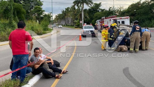 Aparatoso choque y volcadura se registró la tarde de este domingo sobre la venida de ingreso hacia Nuevo Vallarta, cerca de la glorieta de “El Tigre”, en donde un auto compacto golpeó a una camioneta familiar, la cual terminó volcada.