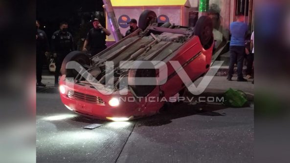 Tepic.- Fuerte choque y volcadura se registró sobre en el boulevard Tepic-Jalisco en la ciudad de Tepic Nayarit, a la altura de la colonia Ojo de Agua, en donde se vieron involucrados un vehículo particular y un taxi, resultando al menos dos personas lesionadas.