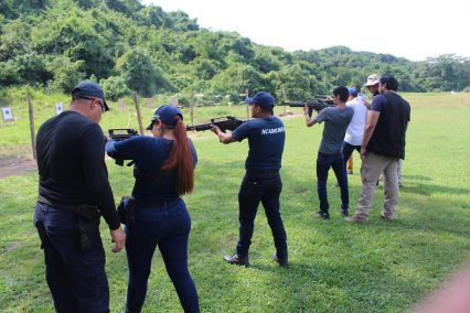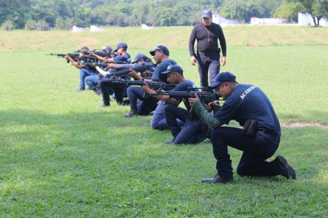 Con el propósito de continuar impulsando e intensificando la capacitación de los alumnos de la 15ª Generación de Policía, 38 jóvenes cadetes se prepararon en Uso de Armamento y Defensa Personal, dichas prácticas a cargo de los instructores de la Academia de Policía, se realizaron en el Club Cinegético.