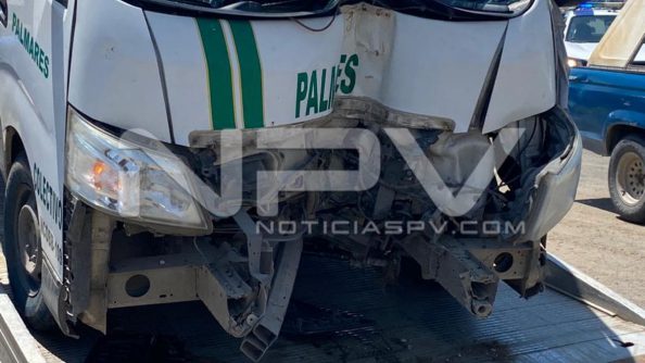 Ahí reportaron a las autoridades policíacas y a los elementos de la cuerpos de auxilio y rescate que una unidad del transporte colectivo de la ruta Palmares-Nuevo Vallarta, se había estrellado contra una lámpara de alumbrado público del camellón central luego de que se le atravesó una góndola, donde resultaron cinco personas lesionadas, entre ellas el conductor.