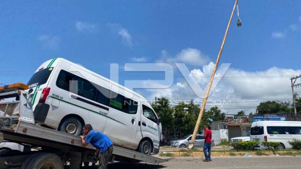 El accidente ocurrió por la carretera a San Vicente donde el conductor de la unidad del transporte público pierde el control y se estrella con una lámpara de alumbrado público