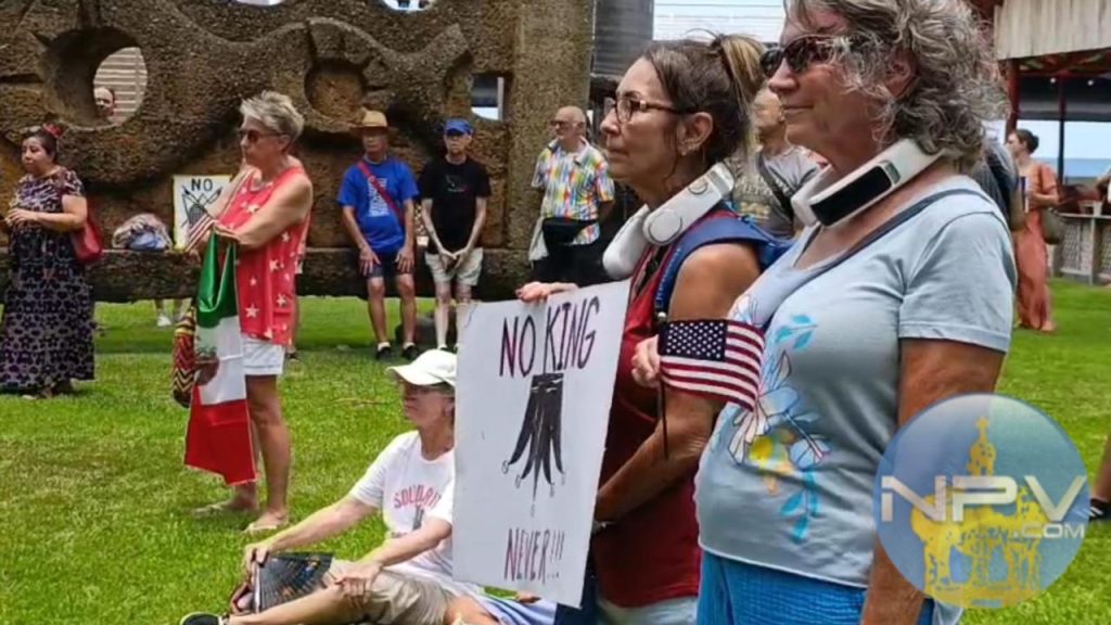 La concentración se llevó a cabo en el parque del río Cuale, ubicado en la Zona Romántica de la ciudad, donde los manifestantes —alrededor de 200 personas, según cálculos de asistentes— portaron pancartas con mensajes tanto en inglés como en español: “No U.S. Kings Day”, “Sin tronos. Sin coronas. Sin reyes”, “Justicia y libertad para todos”, “Trump cruel, ilegal y extremo”, “Somos humanos” y “No eres el rey”.