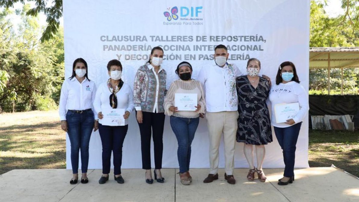 En las instalaciones del Sistema Municipal DIF de Bahía de Banderas, se llevó a cabo la clausura oficial de los diferentes talleres de capacitación, que se ofrecen a la población de manera gratuita, «hoy con alegría puedo decir que estamos clausurando un Taller más de Repostería, Panadería, Cocina Internacional y Decoración en Pastelería, muchas gracias por seguir confiando en el Sistema Municipal DIF», señaló la LTS Ana Esperanza Berumen de Cuevas, titular de esta institución asistencial.