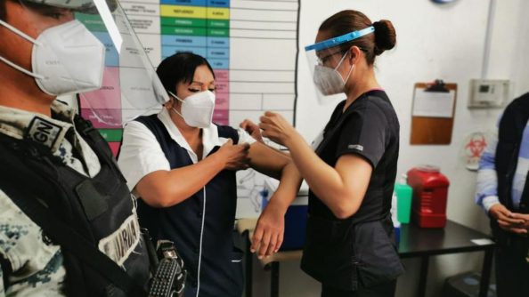 Comunicado.- La Secretaría de Salud de Nayarit, comenzó este miércoles la vacunación del personal médico y de enfermería que labora en la primera línea de atención a pacientes contagiados con COVID-19, esta es la primera de dos dosis que recibirán en un lapso de 21 días y es del laboratorio Pfizer.