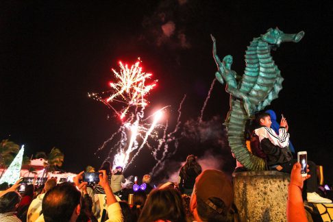En punto de las 12 de la noche, tras el conteo de año nuevo, el cielo de la bahía se iluminará con el espectáculo de fuegos artificiales que anunciarán la llegada del nuevo año 2020.