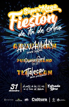 El espectáculo continuará a lado de Puerkas Band DJ Set, con electrocumbias, mezclas duras y sonidos guapachosos para recibir bailando el año nuevo. Así como la actuación especial del músico y productor Anthony Raymundo con secuencias rítmicas, sintetizadores de juguete y guitarrazos psicodélicos.
