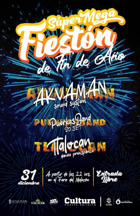 El próximo 31 de diciembre, Puerto Vallarta dará la bienvenida al año 2020 con música, alegría y fuegos artificiales a través del ‘Súper Mega Fiestón de Fin de Año’, preparado especialmente por el Gobierno Municipal que encabeza Arturo Dávalos Peña, para celebrar en grande la llegada del año nuevo, junto a las familias vallartenses y turistas que se darán cita en el malecón de la ciudad.