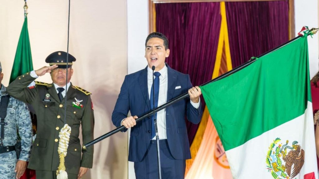 Por primera vez como presidente municipal, Héctor Javier Santana García encabezó la ceremonia del Grito de Independencia en la plaza pública de Valle de Banderas, donde cientos de familias se dieron cita para conmemorar este momento trascendental en la historia del municipio.