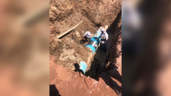 El departamento de Distribución de Agua Potable, realizó las maniobras correspondientes en el tramo fisurado de la tubería de 24 pulgadas de diámetro, esto en el camino al Campo de Golf.