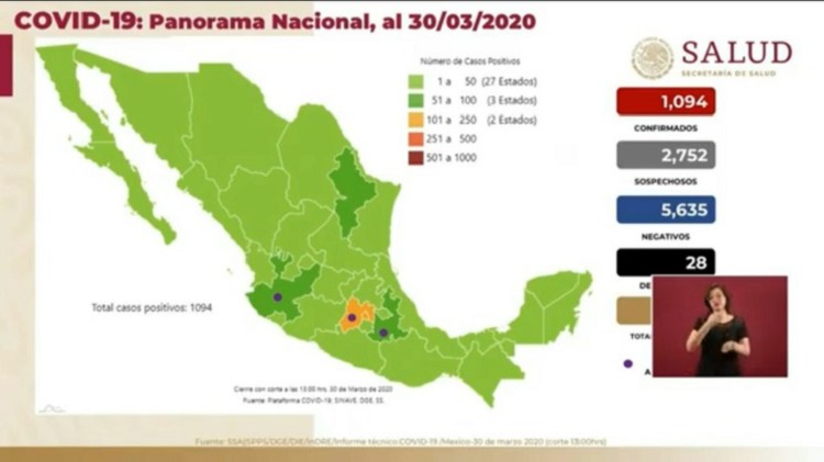 Por primera vez conducida por el secretario de Salud, Jorge Alcocer, esta noche en la se informó que la cifra de casos confirmados de Covid-19 son miil 94 de los que 28 personas fallecieron.