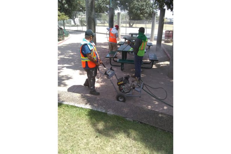 Con el objetivo de contribuir a la disminución de la propagación del Coronavirus (COVID-19) mediante acciones de protección a los ciudadanos, el Gobierno Municipal de Bahía de Banderas que preside el doctor Jaime Cuevas Tello, continúa realizando la limpieza de espacios públicos a través de la aplicación de agua clorada con personal de Aseo Público.