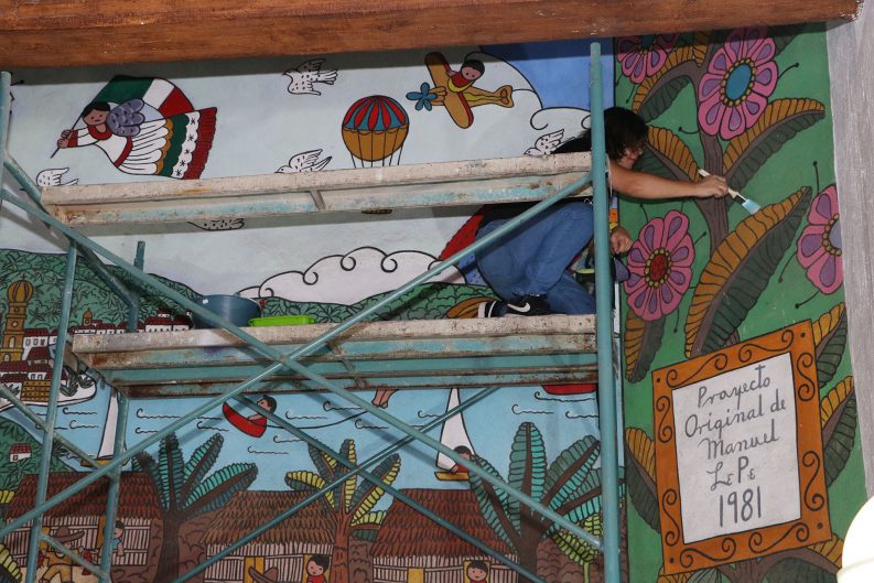 El rescate de la única obra mural del hijo ilustre de Puerto Vallarta, inició a finales del mes de agosto por iniciativa del gobierno municipal que preside Arturo Dávalos Peña, a través del Instituto Vallartense de Cultura (IVC), y con la ejecución por parte de la hija y representante legal del artista, Luz Marcela Lepe Quiroz.