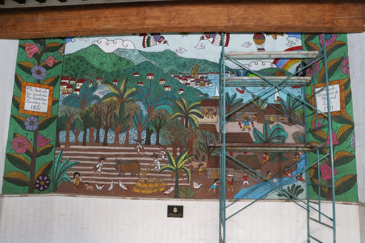 El rescate de la única obra mural del hijo ilustre de Puerto Vallarta, inició a finales del mes de agosto por iniciativa del gobierno municipal que preside Arturo Dávalos Peña, a través del Instituto Vallartense de Cultura (IVC), y con la ejecución por parte de la hija y representante legal del artista, Luz Marcela Lepe Quiroz.