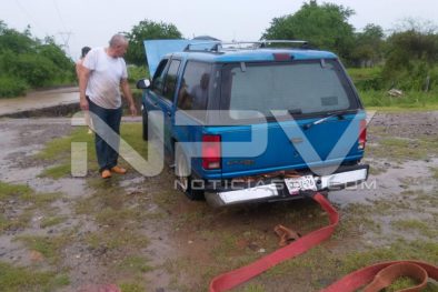 En el lugar estaban varios masculinos intentando sacar la camioneta con unas sogas que jalaban con un tractor, pero no podían ya que había una piedras atorando las llantas, por lo que solicitaron el apoyo con otro tractor que llegó minutos más tarde y así lograron sacar del agua dicha camioneta que quedó dañada.