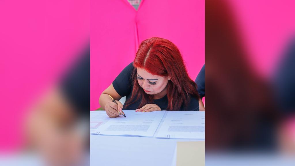 Completamente emocionada, Martha Delia recibió las llaves de su nueva casa, así como también firmó las escrituras de la misma en presencia del notario José Luis Reyes.