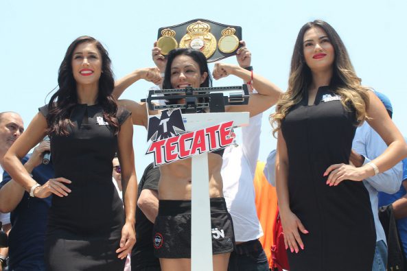 Jackie Nava y Marcela Acuña cumplieron con el peso de cara a sus peleas este 25 de mayo en el estadio municipal de Béisbol