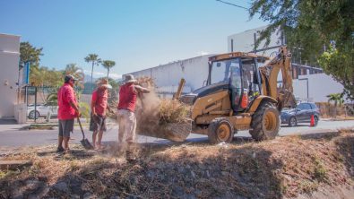 “Por instrucciones del Profe Michel, hoy (miércoles) estamos haciendo la limpieza en el canal de la Avenida Los Tules y estos trabajos se realizarán en todos los canales y arroyos de Puerto Vallarta. Con la retroexcavadora sacamos lodo y maleza porque si no lo hacemos, en la temporada de lluvias el agua puede alcanzar un gran nivel y así se originan las inundaciones”.