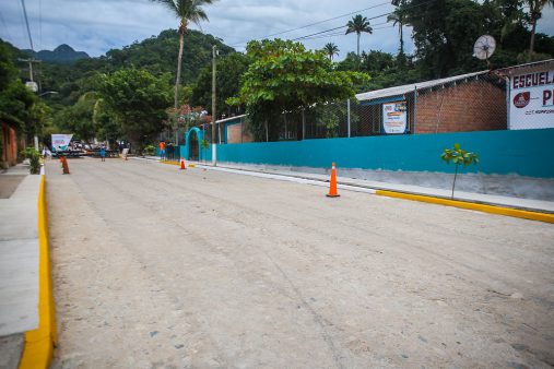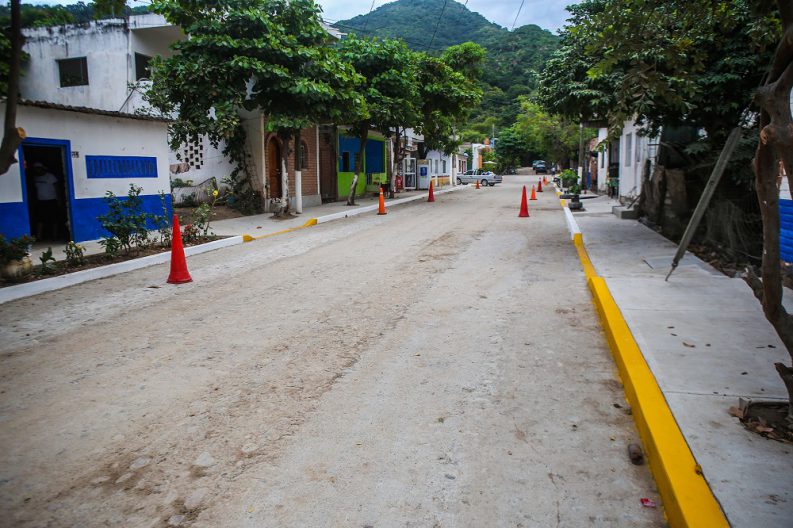 Se trata de la pavimentación en empedrado ahogado en mortero de las calles Venustiano Carranza, Vicente Guerrero, Emiliano Zapata y Pedro Moreno, que conforman el primer cuadro de esta emblemática localidad que es frecuentada por vallartenses y visitantes como área de esparcimiento.