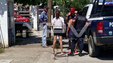 Hasta ese lugar llegaron los elementos de la Dirección de Seguridad Pública de Bahía de Banderas a bordo de dos unidad radio patrullas de donde bajaron los agentes policíacos y se entrevistaron con dos personas del sexo femenino y un masculino quienes señalaron a la persona agresiva misma que fue detenida en ese momento por la Policía Municipal.