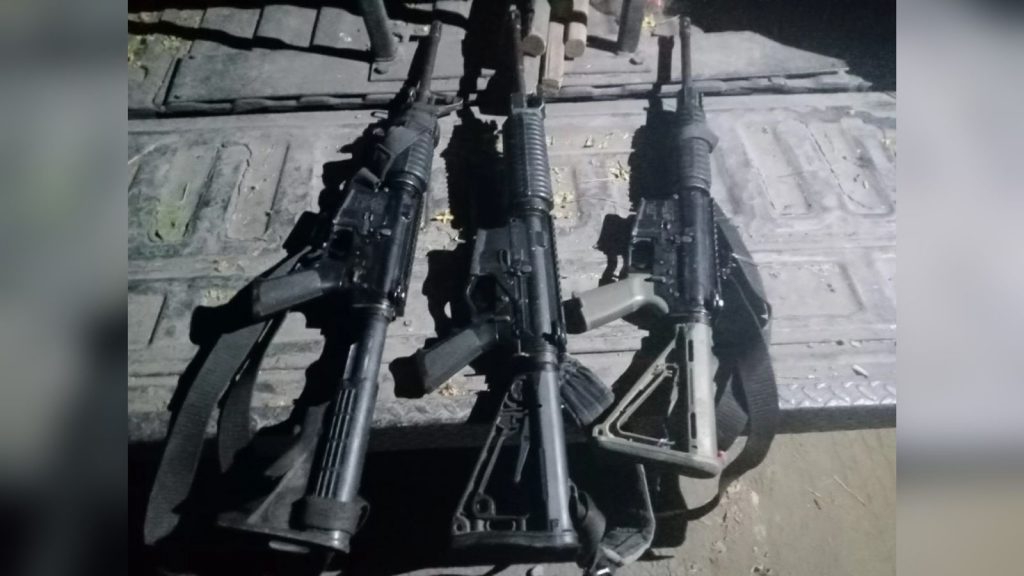 Los soldados y policías decomisaron al detenido un total de tres rifles de asalto tipo AR-15, con 12 cargadores y 330 cartuchos útiles, así como equipo táctico.