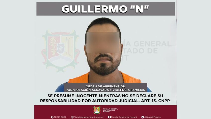 La Fiscalía General del Estado de Nayarit confirmó la detención de un hombre identificado como Guillermo “N”, quien es señalado por su presunta responsabilidad en los delitos de violación agravada y violencia familiar, en agravio de una mujer cuya identidad se mantiene bajo estricta reserva.