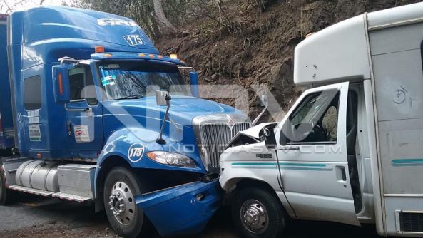 Manifiestan los tripulantes del minibús que al llegar al kilómetro109, por el carril de sur a norte se les atravesó un trailer de la marca internacional, en color azul, modelo 2019, con placas 44AH 1L y razón social de trasporte GRL S.A. de C.V, que era conducido por una persona de nombre Gustavo Estrada, de 50 años, quien se impactó de frente contra ellos.