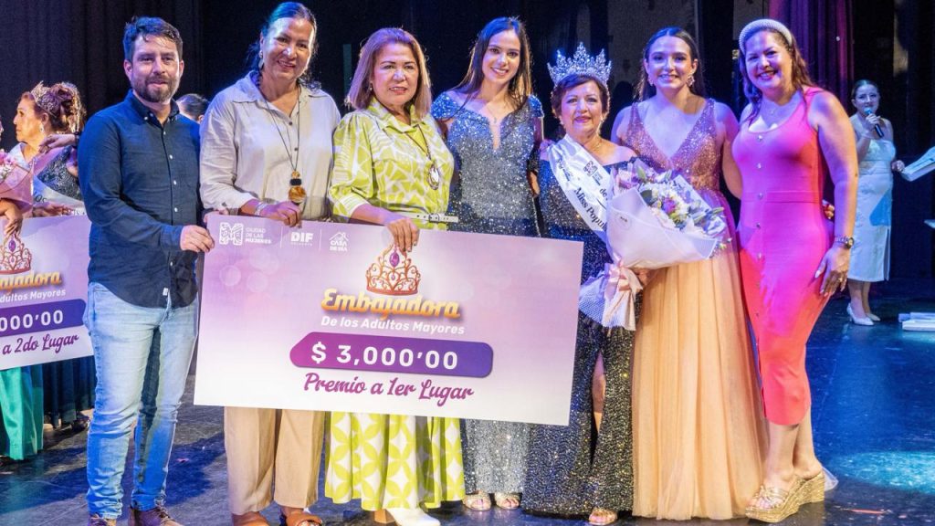 En un emocionante certamen, la presidenta del Sistema DIF de Puerto Vallarta, Claudia Peña, coronó a la señora Raquel Delgado Lepe como la nueva Embajadora Municipal de los Adultos Mayores 2025, quien además obtuvo el galardón de «Señora Popularidad» y recibió un premio económico.