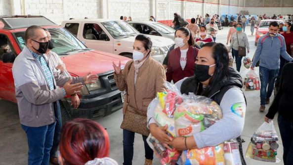Además de los juguetes, como parte del apoyo por parte del Sistema DIF, se entregaron despensas a las familias en situación vulnerable, atendiendo las necesidades alimenticias ante la contingencia sanitaria por el Covid-19.