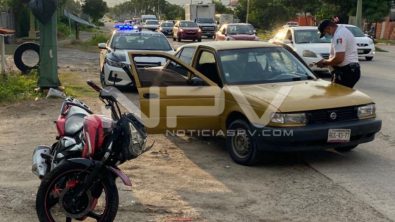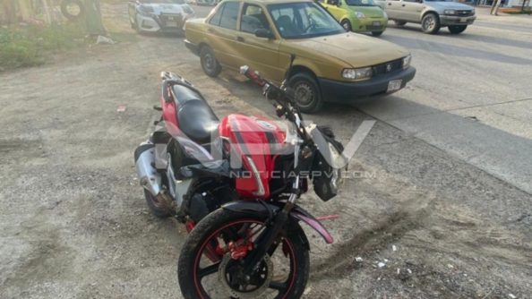 Hasta ese sitio se dirigieron los agentes de Tránsito a bordo de sus unidades radio patrullas, quienes al arribar se percatan del accidente, informando que se trata de una motocicleta Italika de color rojo con negro y un vehículo Tsuru, con placas de Nayarit, que chocaron al momento que el conductor de la moto rebasó por zona prohibida y se impactó contra el auto.