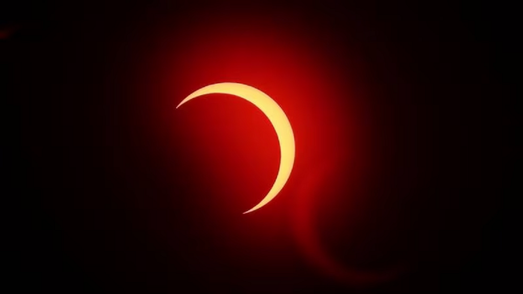 Cerca de las 10:00 horas, el eclipse anular solar oscureció brevemente los cielos del oeste de Estados Unidos y de América Central y del Sur. Este fenómeno se alcanzó a observar cuando la Luna se alineó con precisión entre la Tierra y el Sol, borrando todo excepto el borde exterior del Sol.