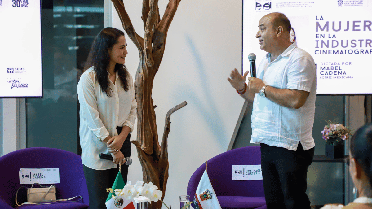 Durante más de una hora, la joven intérprete del séptimo arte dictó la ‘Cátedra Huston de Cine y Literatura’ del Centro Universitario de la Costa, que se ha posicionado como un espacio para la creación, estudio, crítica y exposición del arte en general, la cual rinde un homenaje a John Houston, uno de los mejores cineastas del siglo XX, acompañada por la Dra. Paola Cortés Almanzar, titular del Departamento de Arte, Educación y Humanidades del CUCosta.